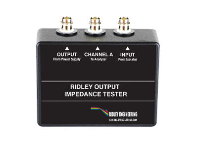 Designed to work with the Ridley Universal Injector, our output impedance injector provides a convenient interface direct to the output of the power supply. It provides dc-blocking, and a current measurement port for direct connection to the AP Instruments Frequency Response Analyzer.